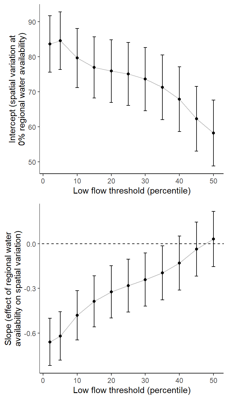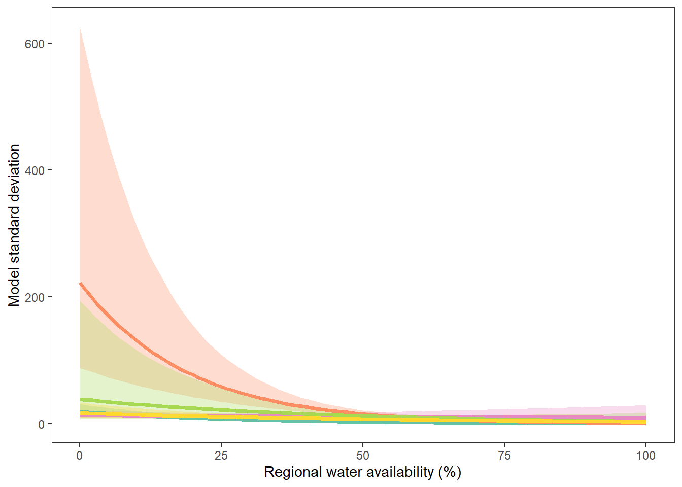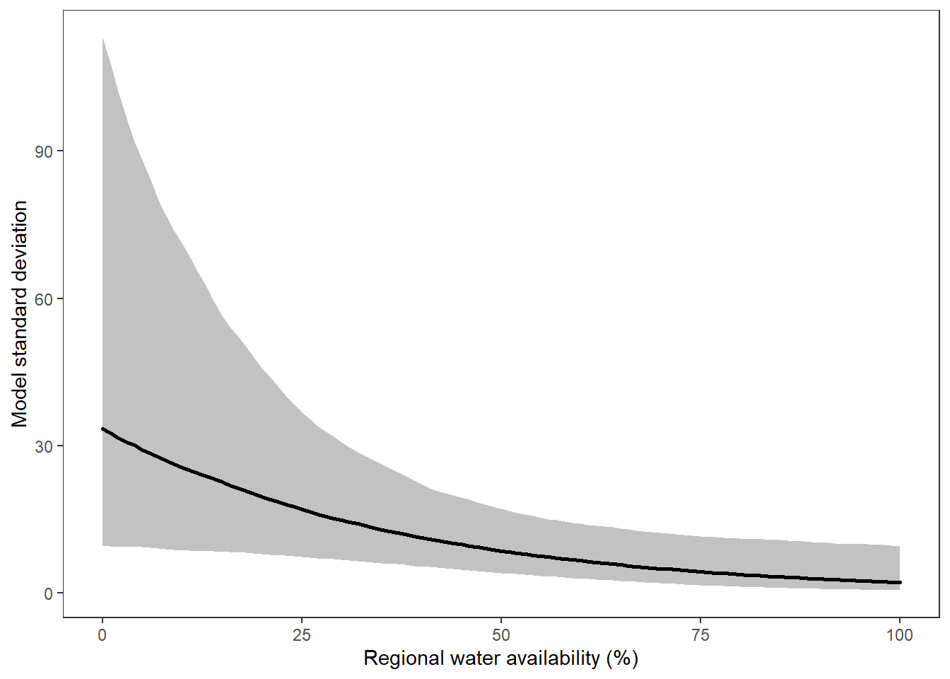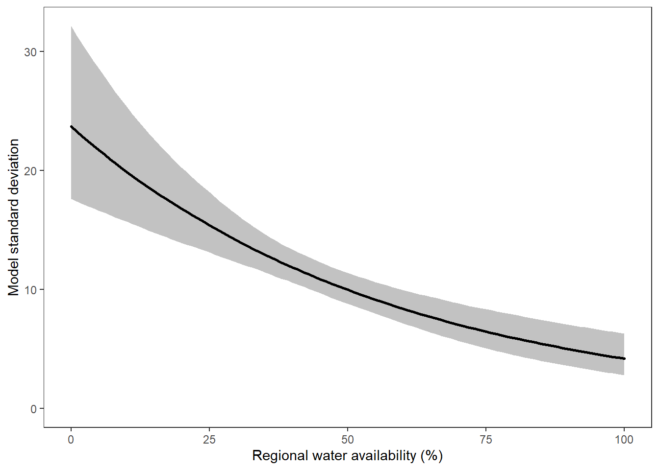 ylab("Spatial variation in drought duration (SD)") + xlab("Regional water availability (percentile)") +