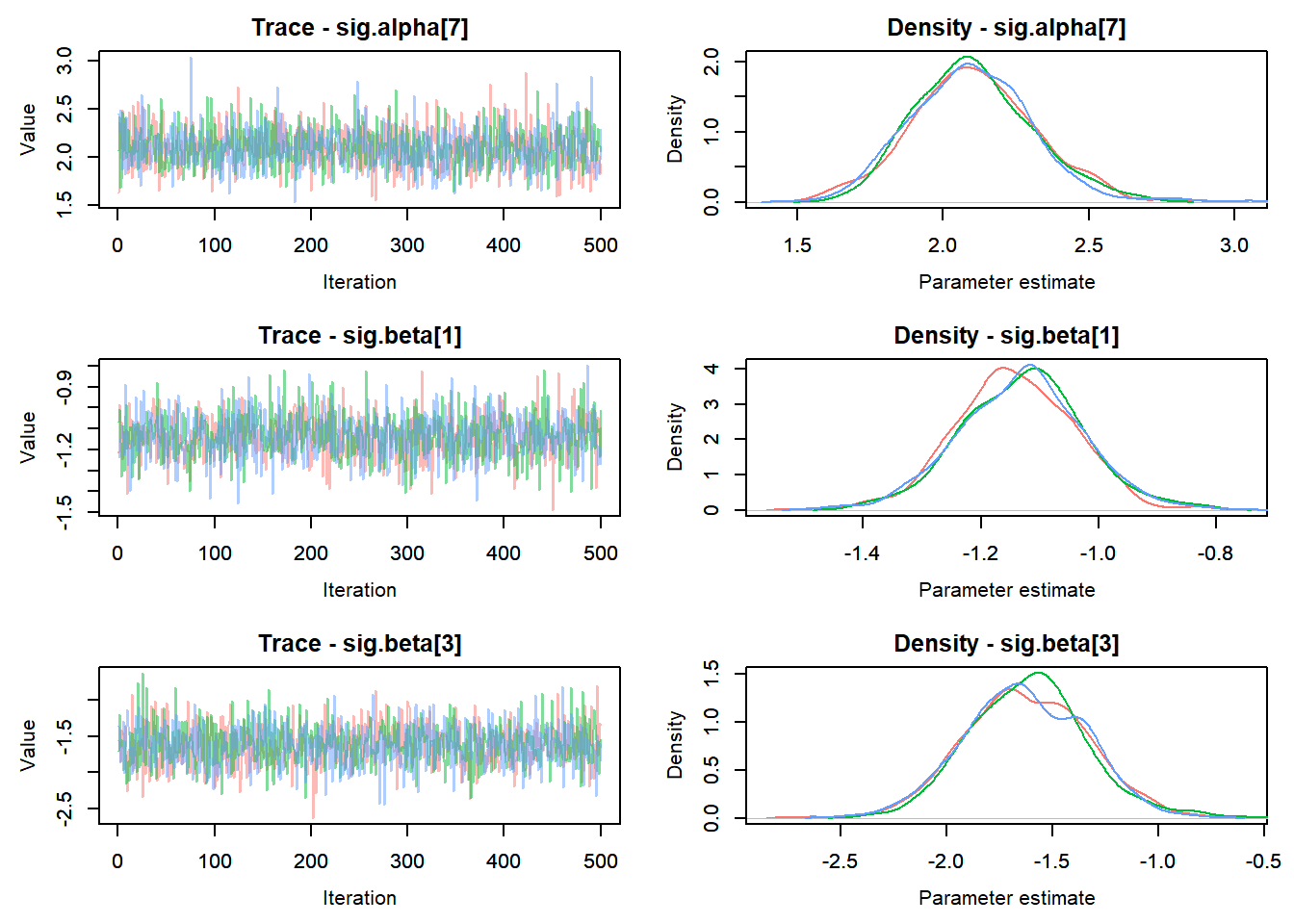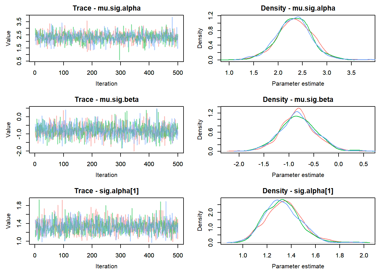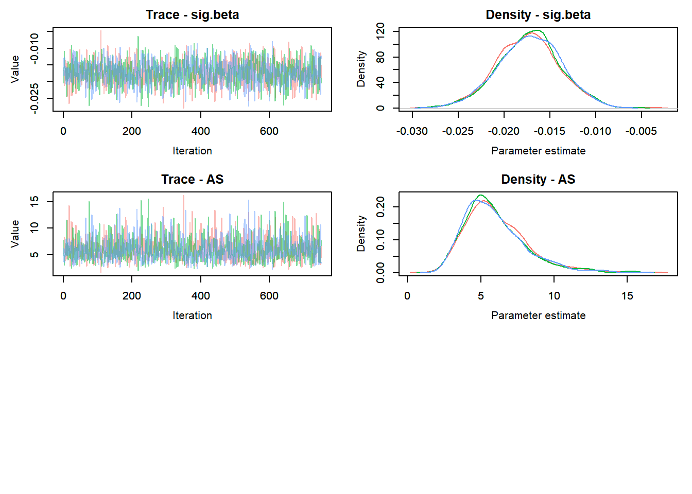 n.chains = 3, n.thin = 50, n.burnin = 2000, n.iter = 10000, DIC = FALSE)