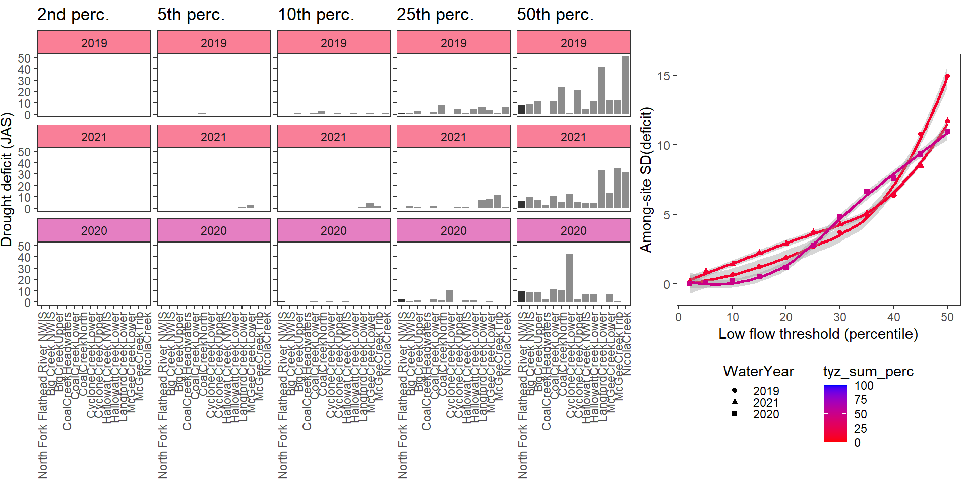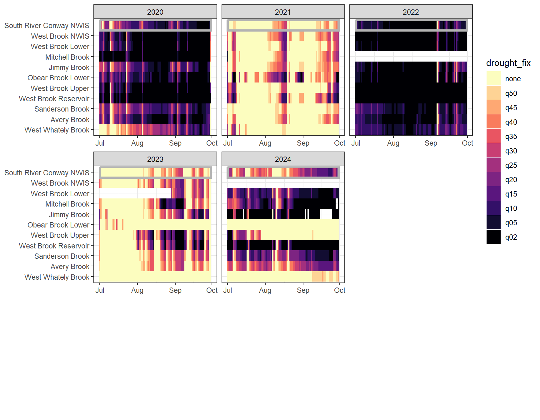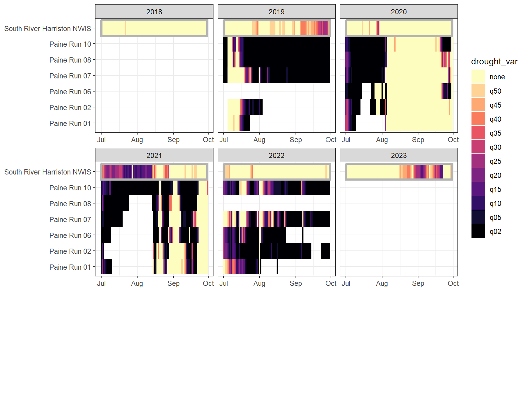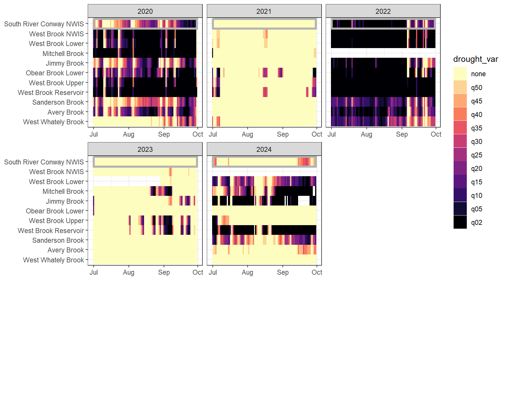 Purpose: Evaluate spatiotemporal variation in drought-related low flow conditions across headwater stream networks.