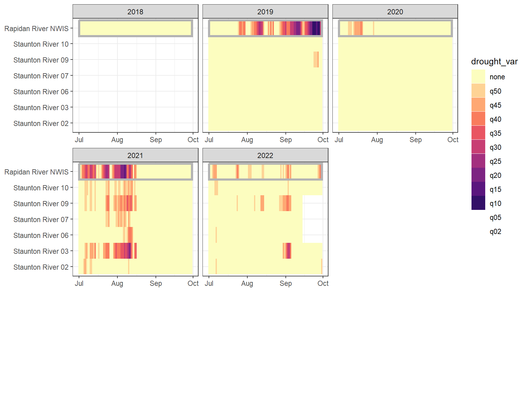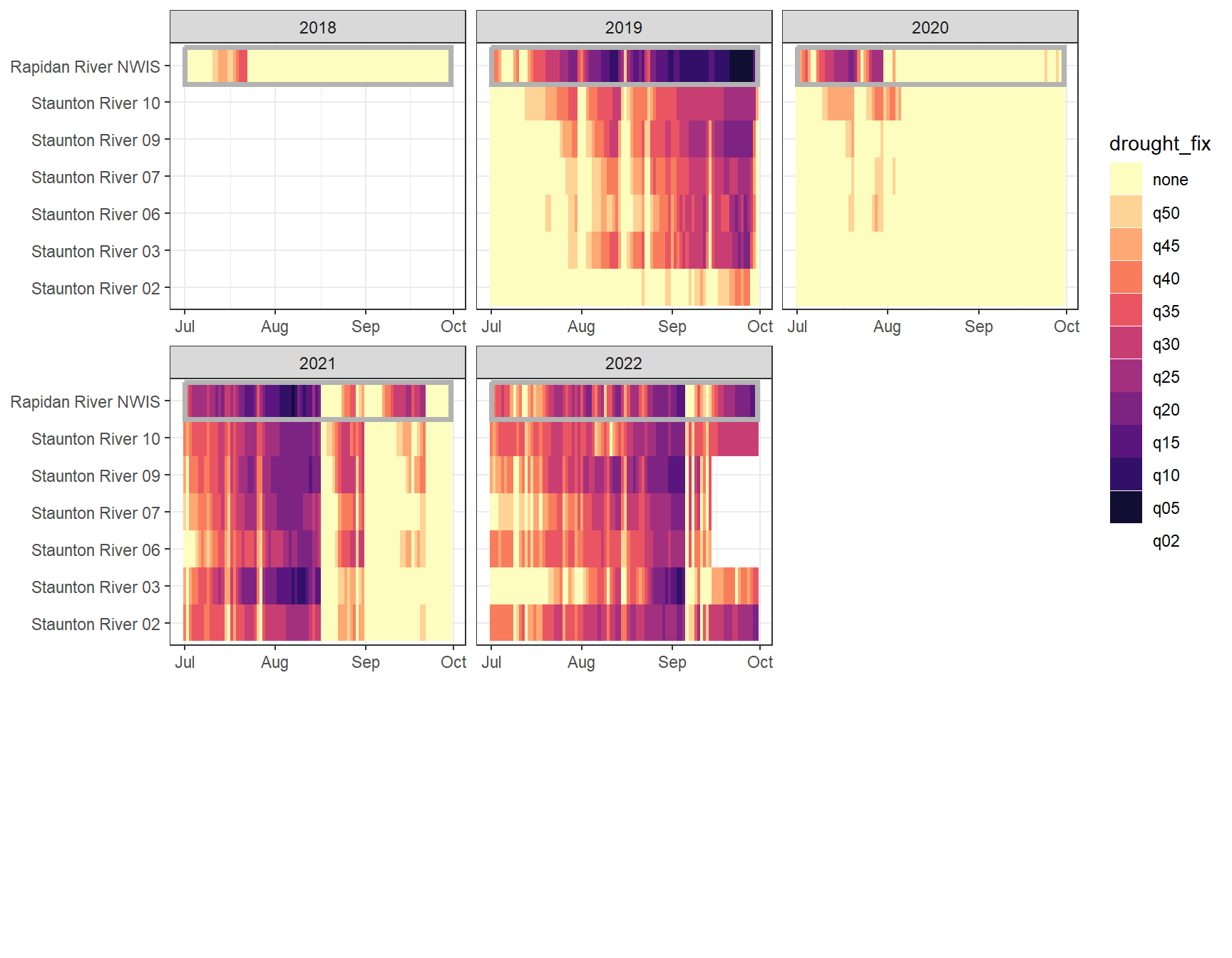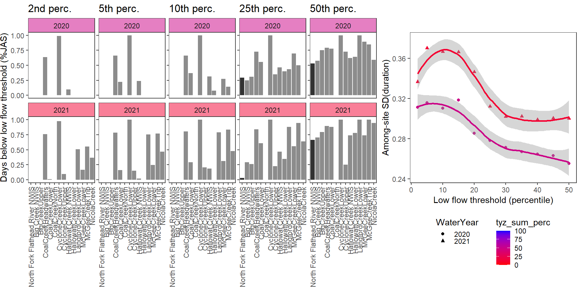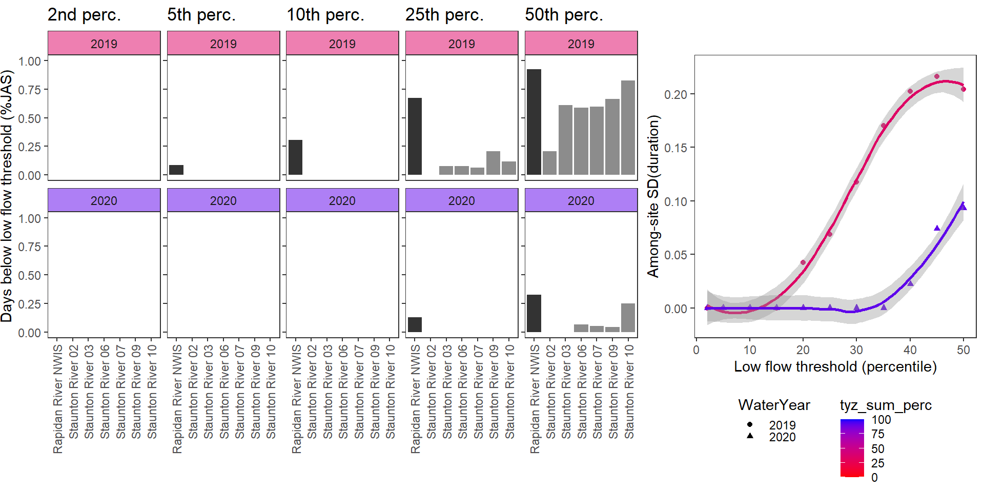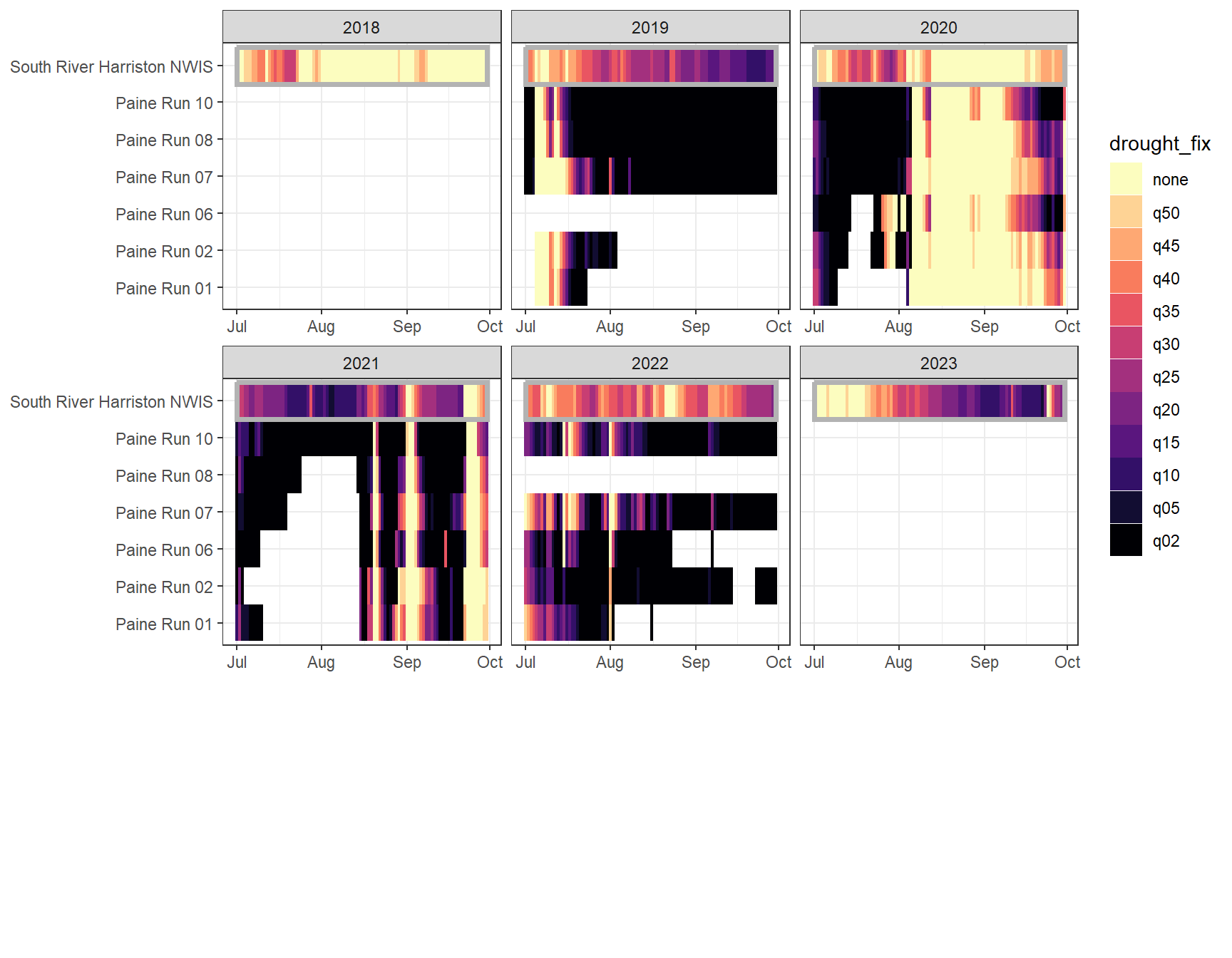 Purpose: Evaluate spatiotemporal variation in drought-related low flow conditions across headwater stream networks.