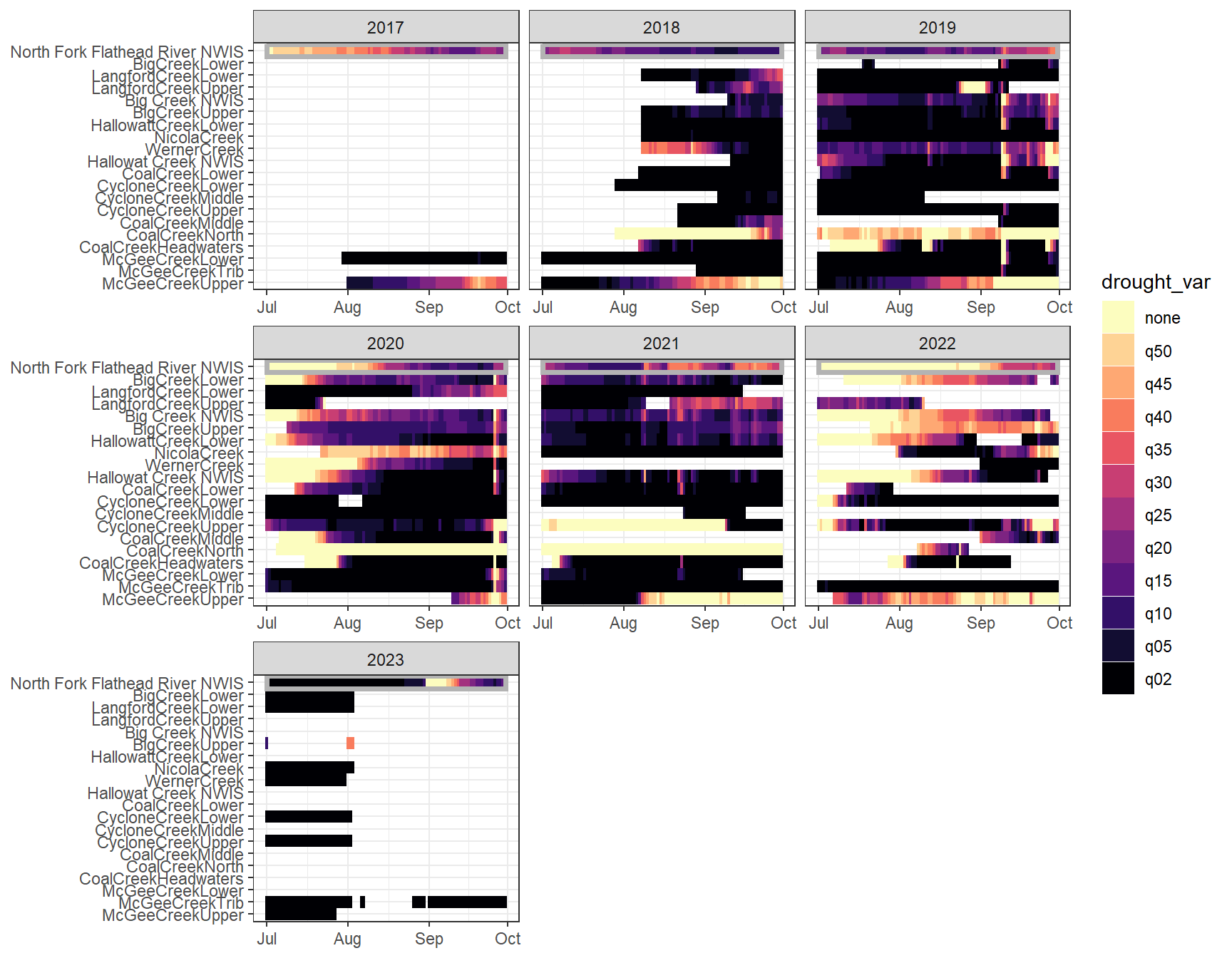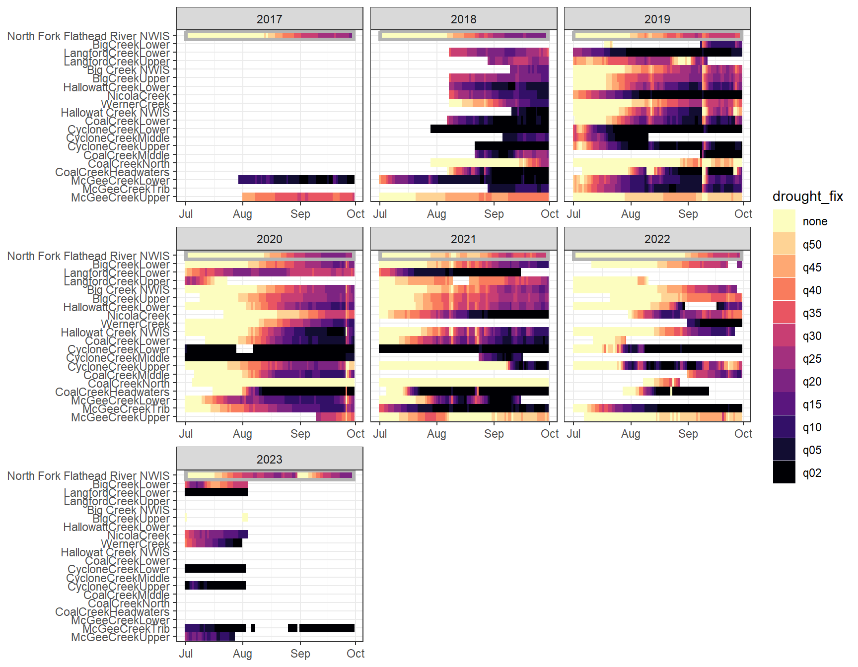 yellorder <- c("Spread Creek Dam", "Rock Creek", "NF Spread Creek Lower", "NF Spread Creek Upper", "Grizzly Creek", "SF Spread Creek Lower", "Grouse Creek", "SF Spread Creek Upper", "Leidy Creek Mouth")