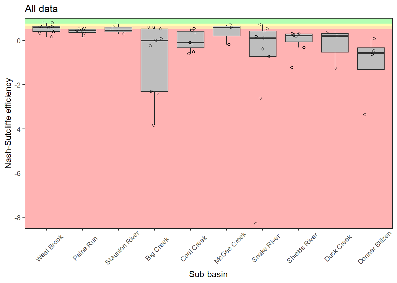 xlab("Sub-basin") + ylab("Nash-Sutcliffe efficiency") + ggtitle("All data") +
