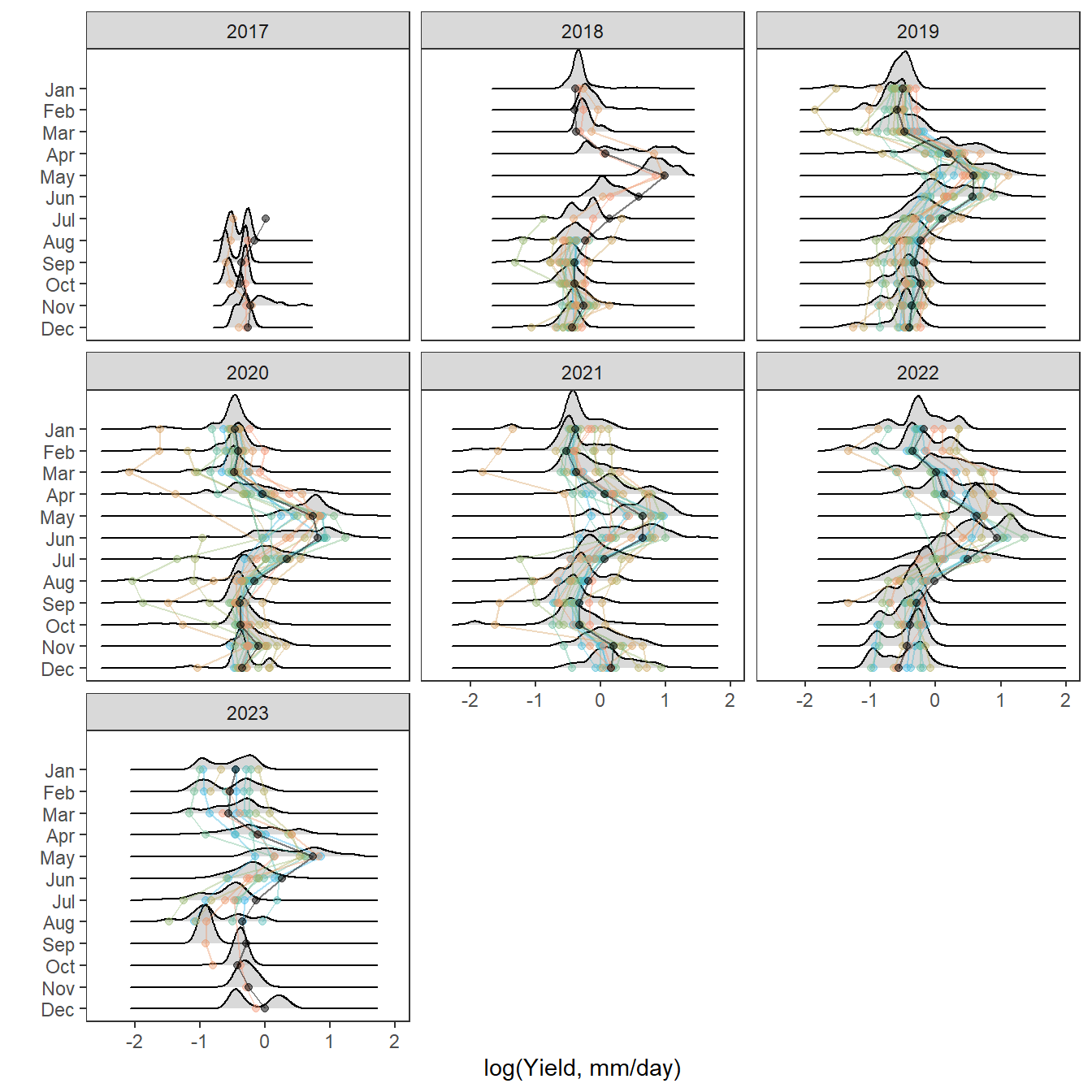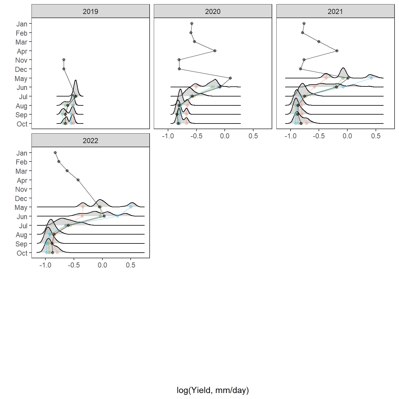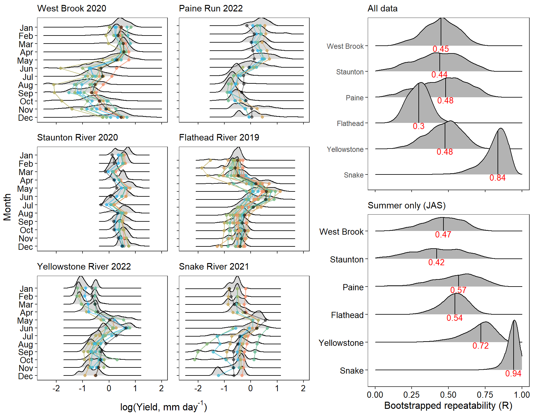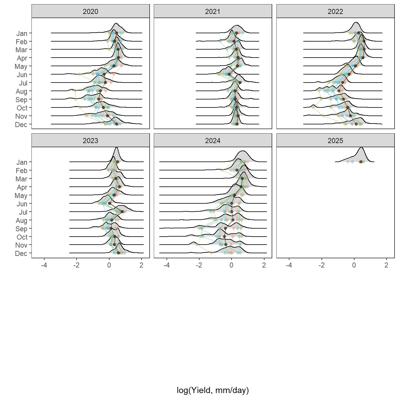 mtext("log(Daily yield, mm)", outer = TRUE, side = 2, line = 0.5)