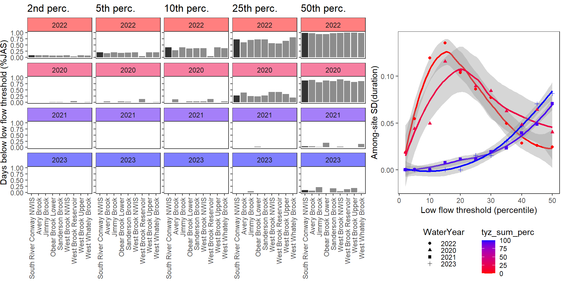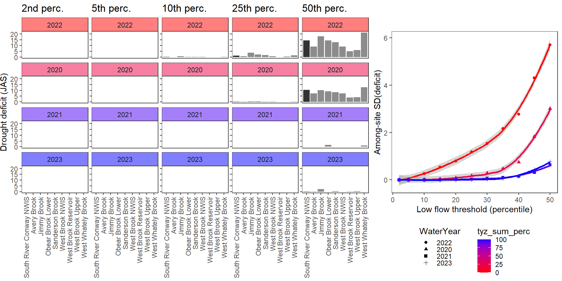 # jpeg("C:/Users/jbaldock/OneDrive - DOI/Documents/USGS/EcoDrought/EcoDrought Working/Presentation figs/DroughtDuration_sitelevel_WestBrook_2020-2021_HydroAndHeat.jpg", width = 5.5, height = 5.5, units = "in", res = 1000)