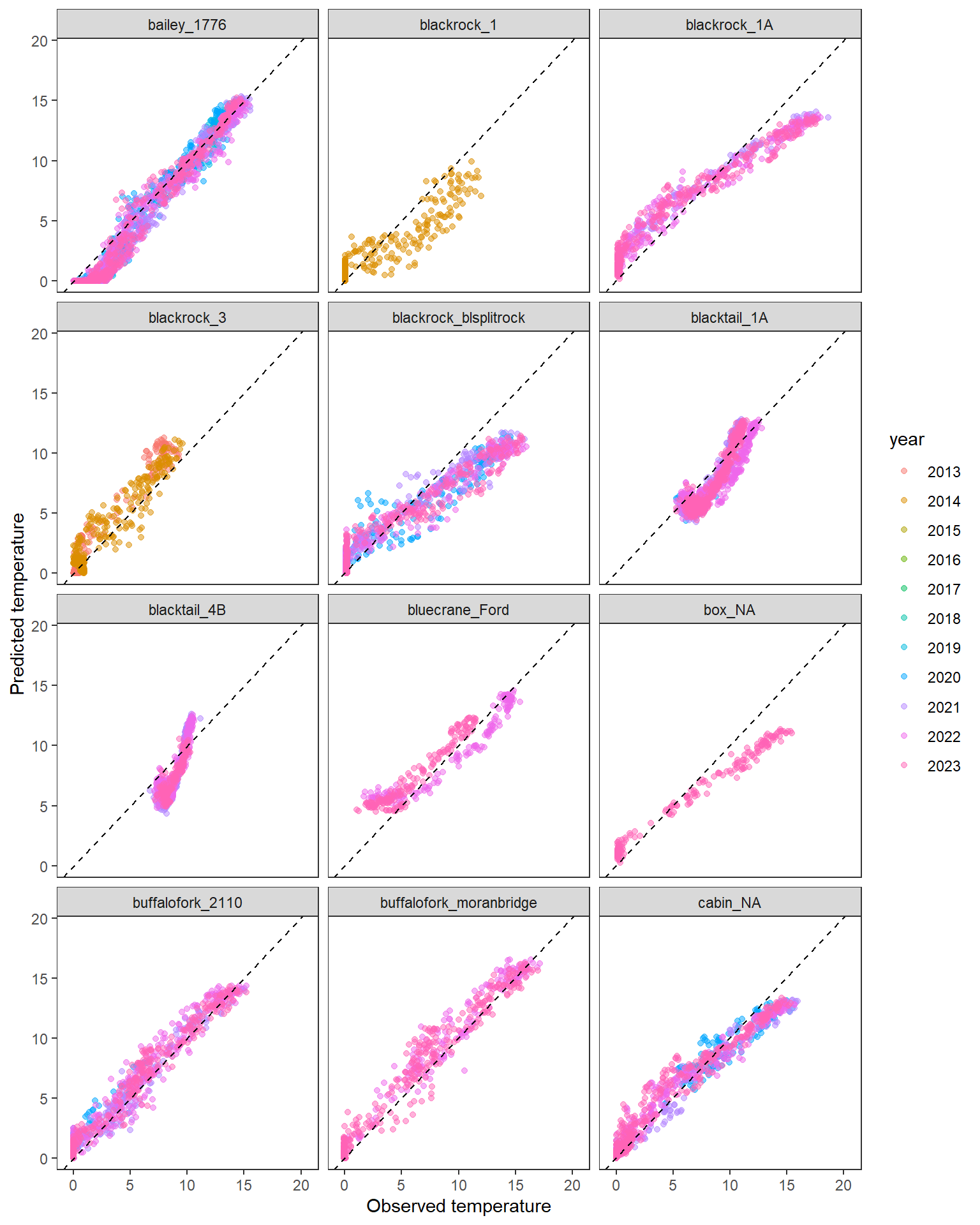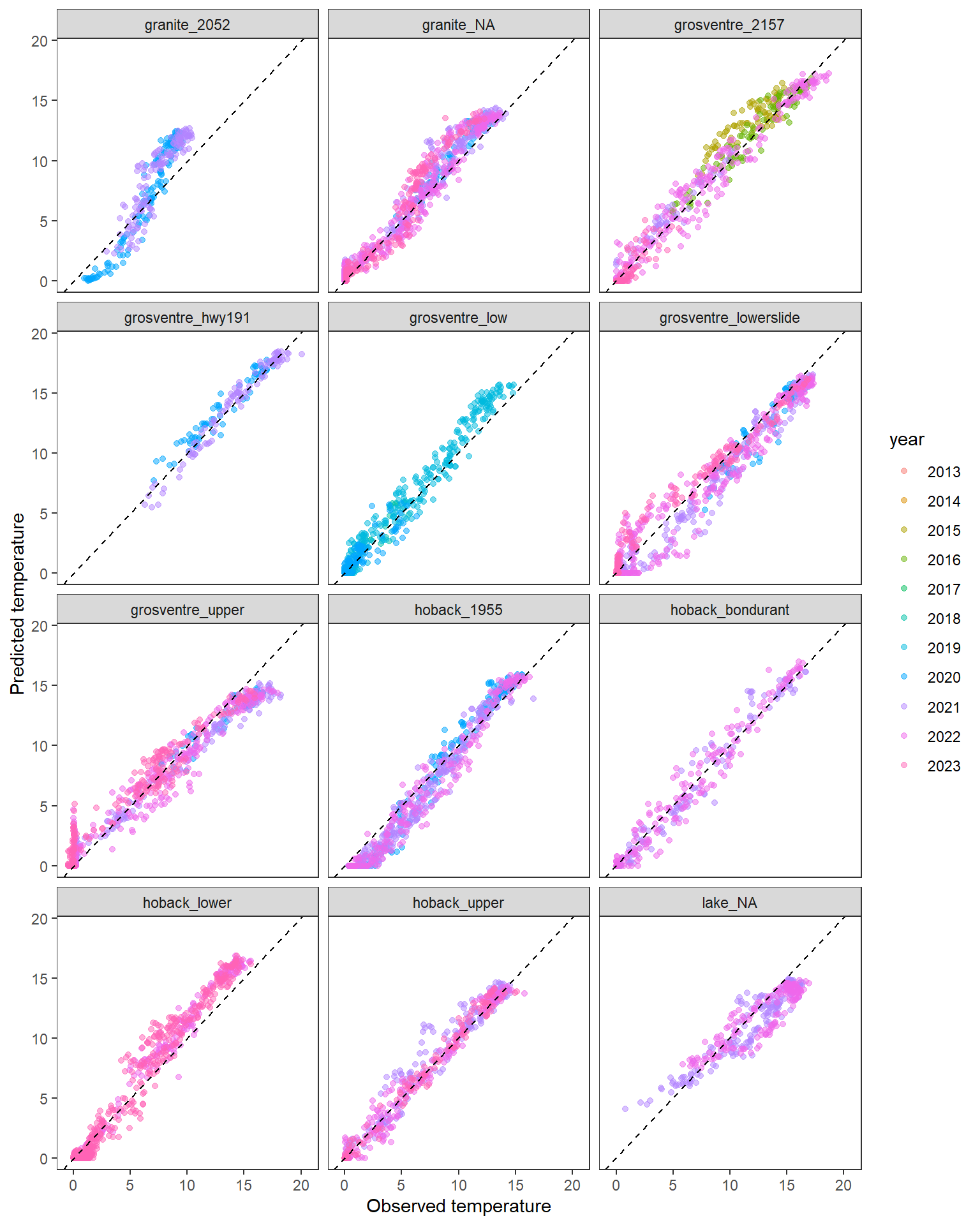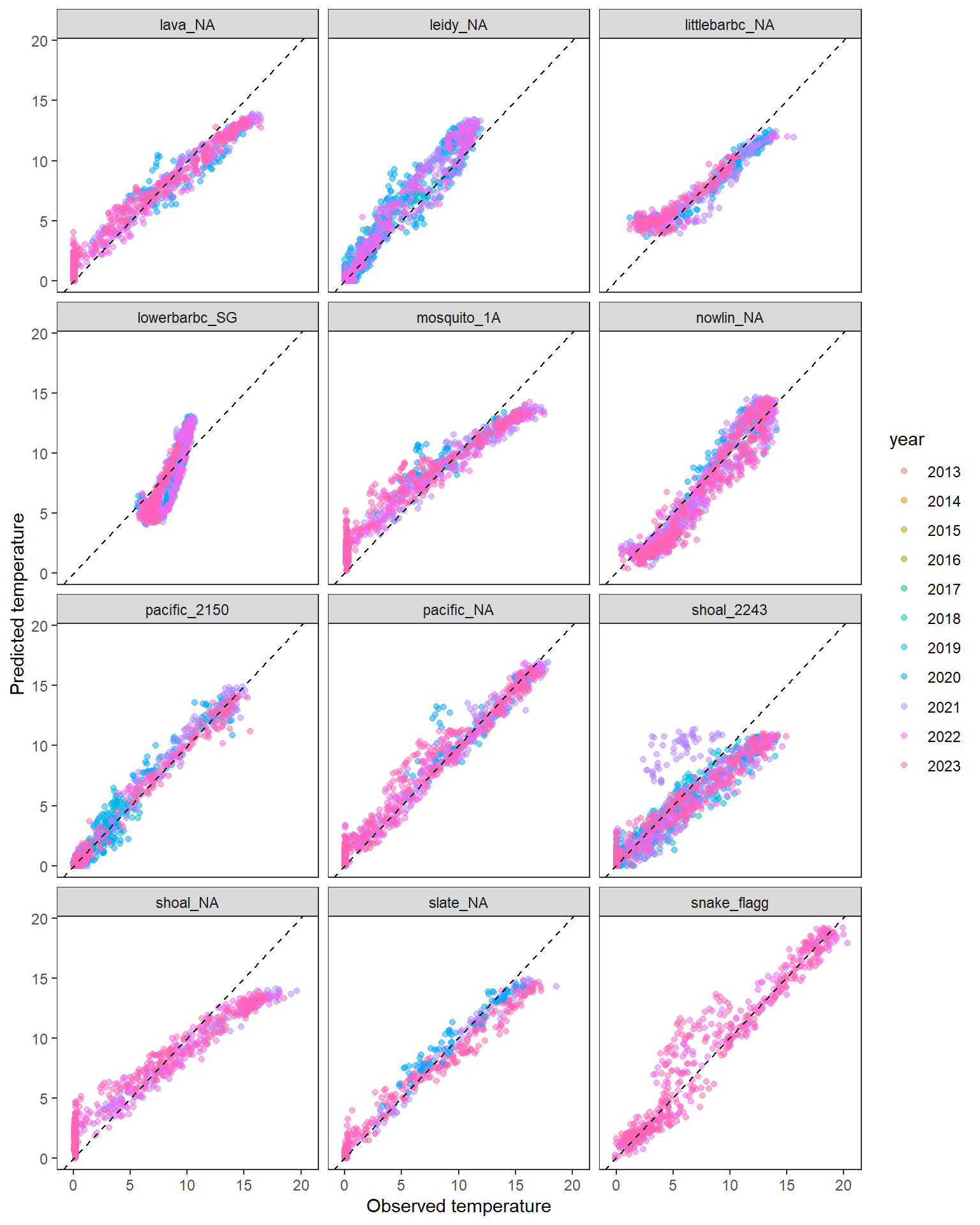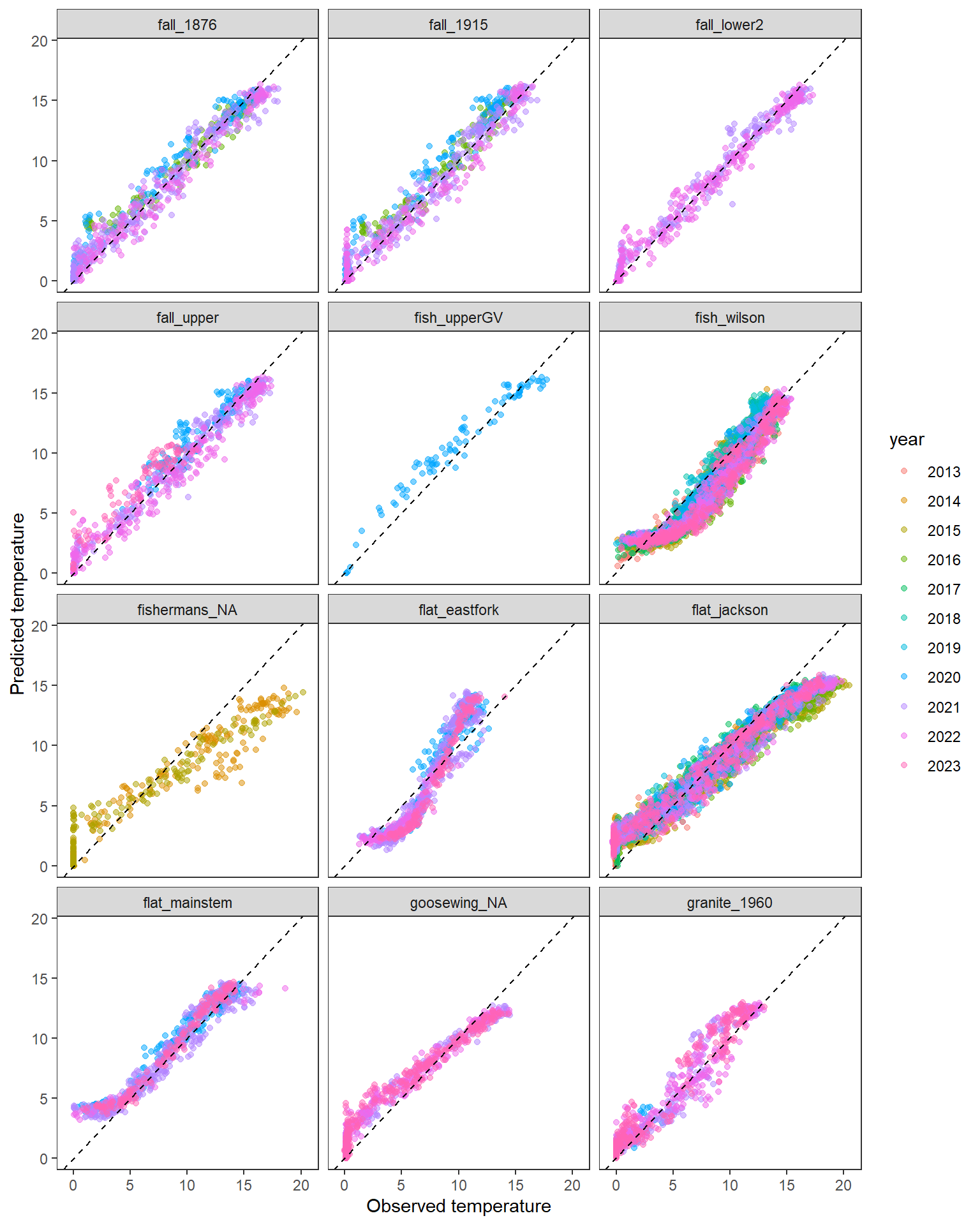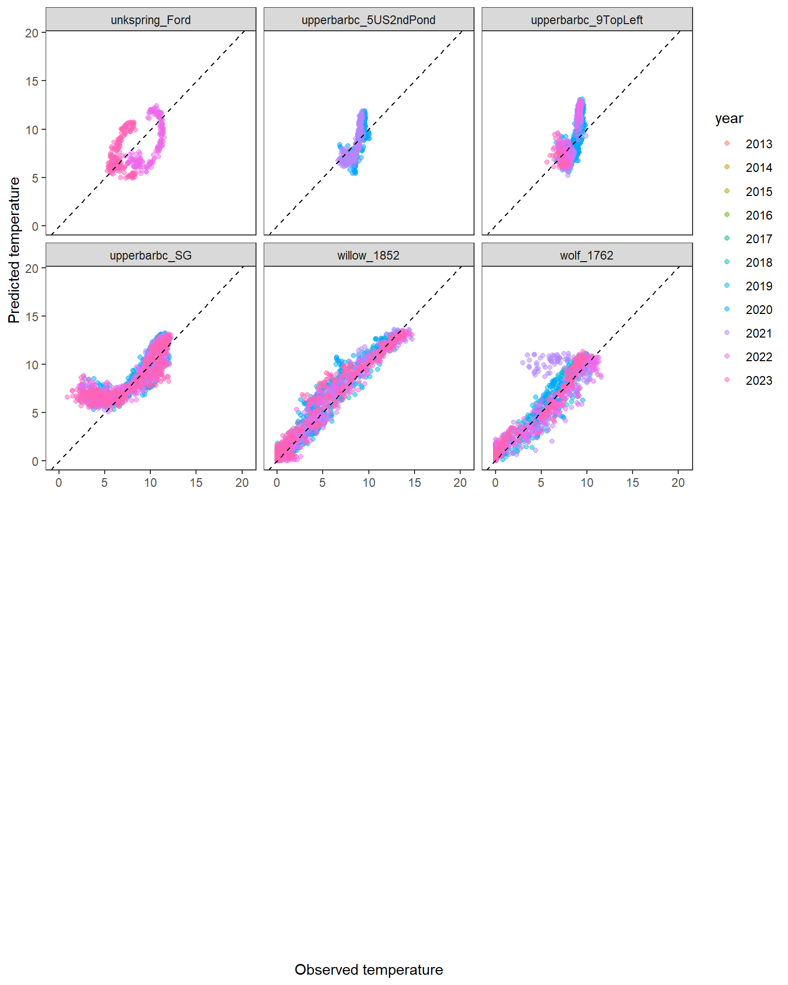 Purpose: Explore the relationship between residuals from K. Gauthier’s daily stream temperature model and independent metrics of groundwater availability. This is somewhat complicated by the fact that Kevin’s model already uses groundwater availability as a covariate, so we really aren’t evaluating how much additional information the groundwater metric adds, but rather the variance that isn’t explained by the existing metric (e.g., driven by spatial/temporal variation in groundwater temperature, lagged groundwater temperature signals, etc.).