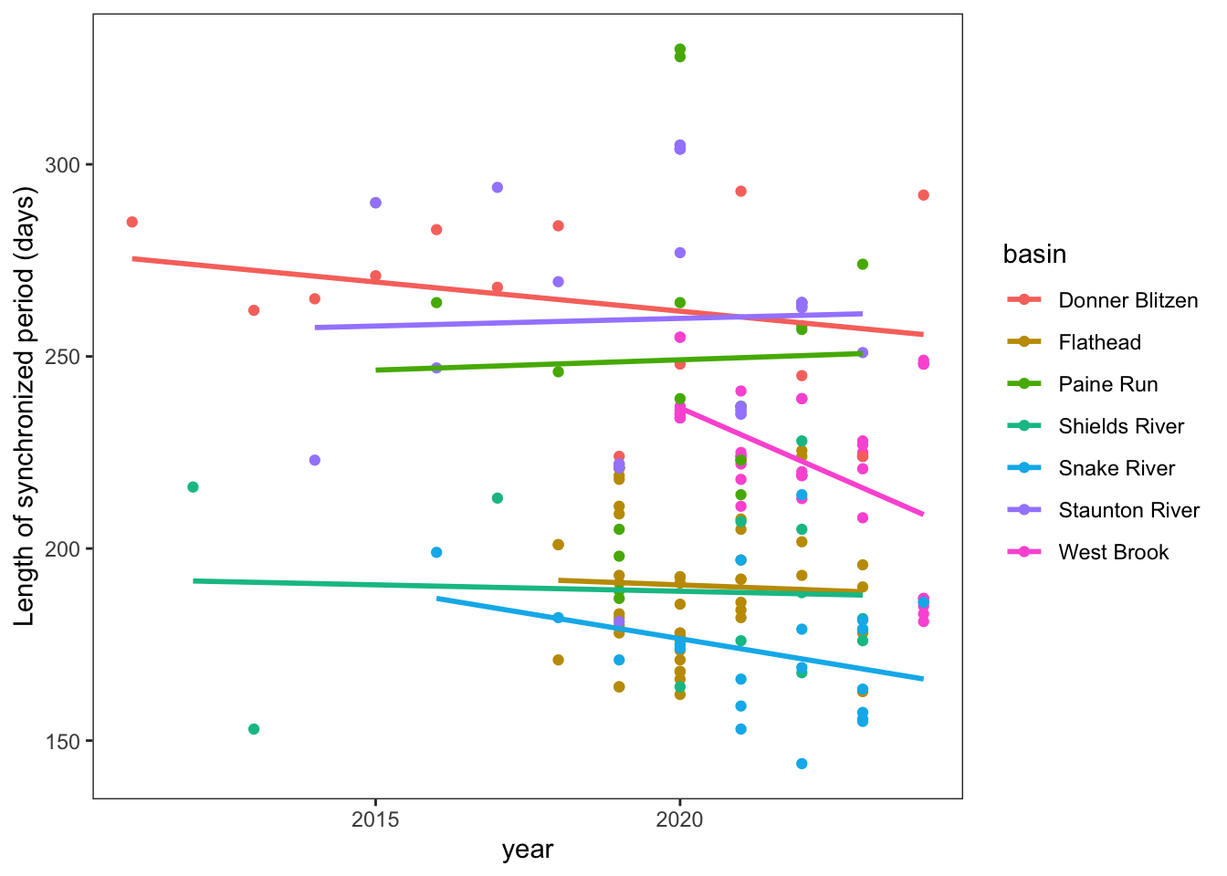 ggplot(aes(x = year, y = SynchLen, color = basin)) +