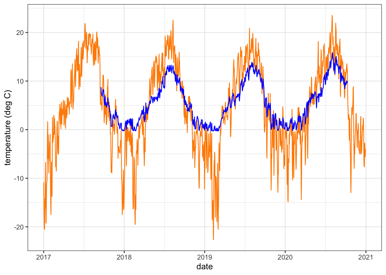 geom_line(aes(x = date, y = air_temp_mean), color = "darkorange") +