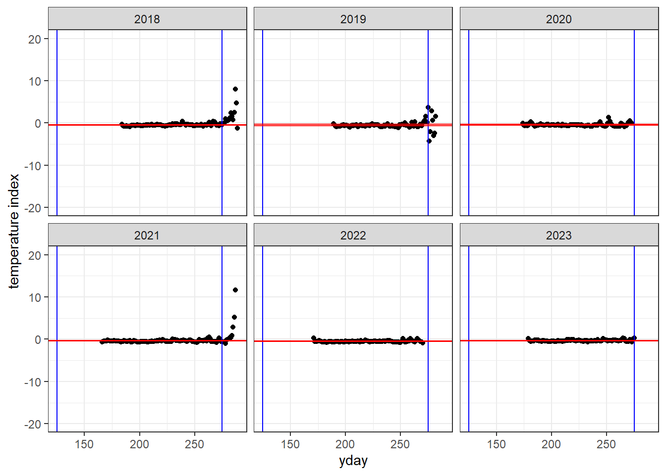 dat <-read_csv("C:/Users/jbaldock/OneDrive - DOI/Documents/USGS/EcoDrought/EcoDrought Working/Data/EcoDrought_FlowTempData_DailyWeekly.csv")dat