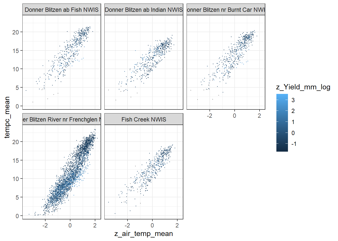 This model uses air temperature and flow data standardized by site.