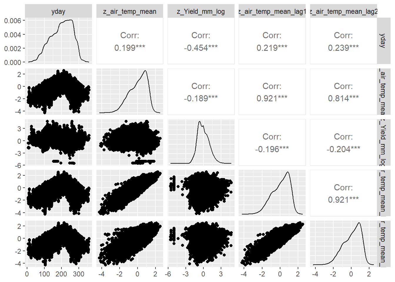 I’m starting to wonder how reasonable it is to include these lagged effect of air temperature in this model. Lagged variables do have strong effects, and Ben included them in his 2016 and 2018 papers…but those model were built for prediction