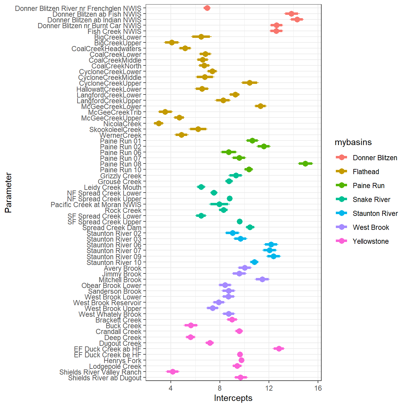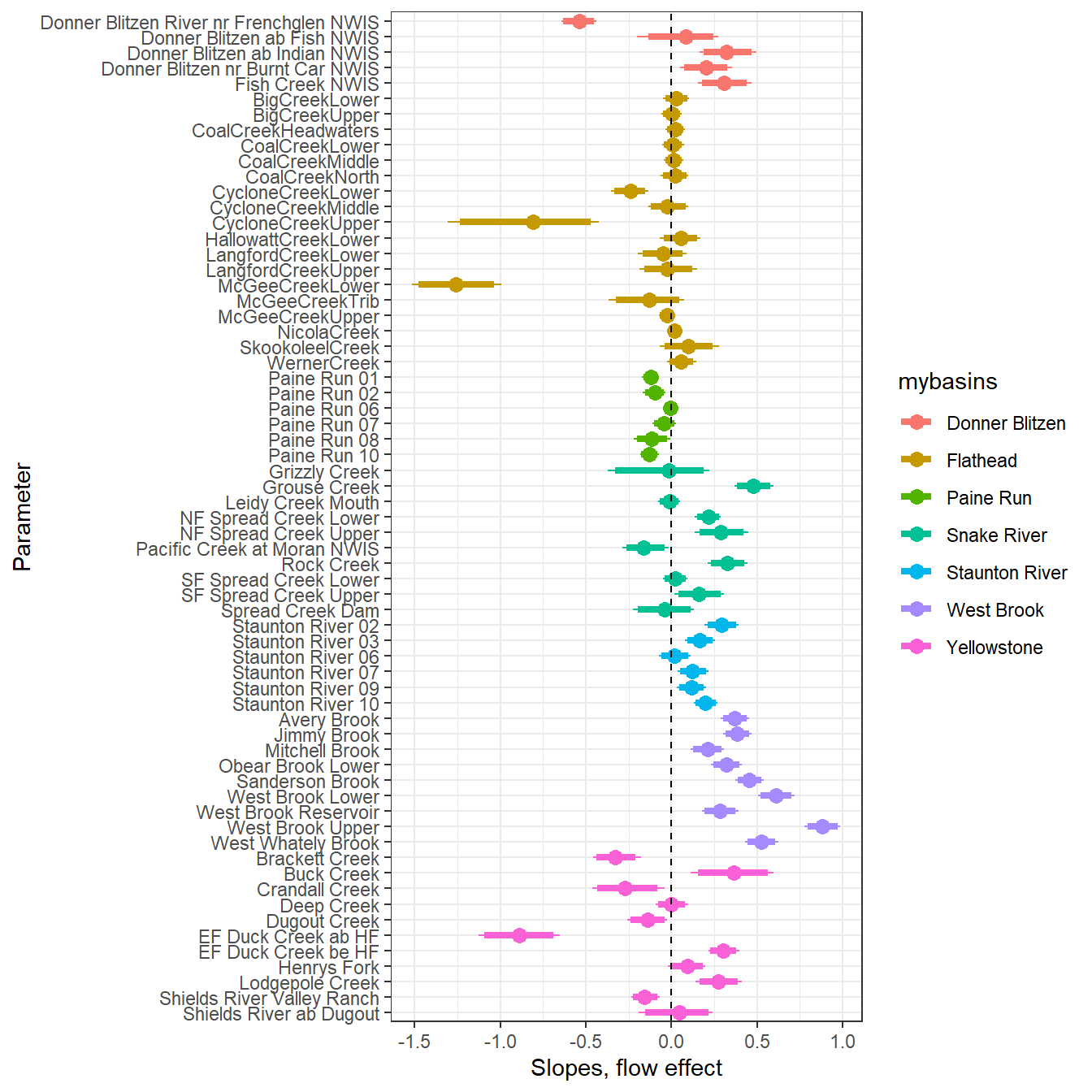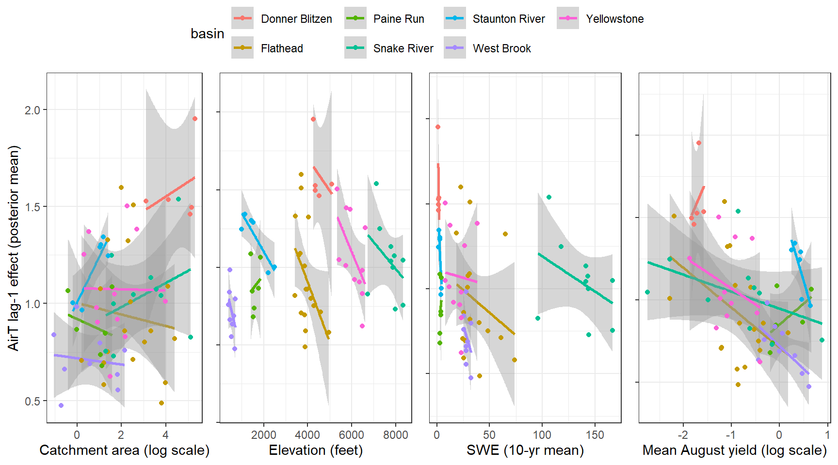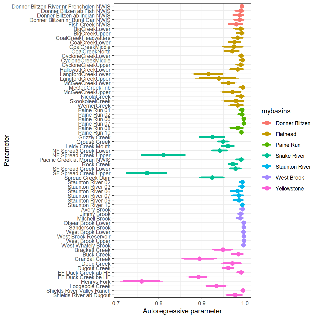 * Consider bringing in additional data from NWIS to fill in middle-upper end of catchment size spectrum (Snake: Blackrock, Cache, Granite...bigger rivers? Hoback, Gros Ventre, Greys...where to draw the line?)